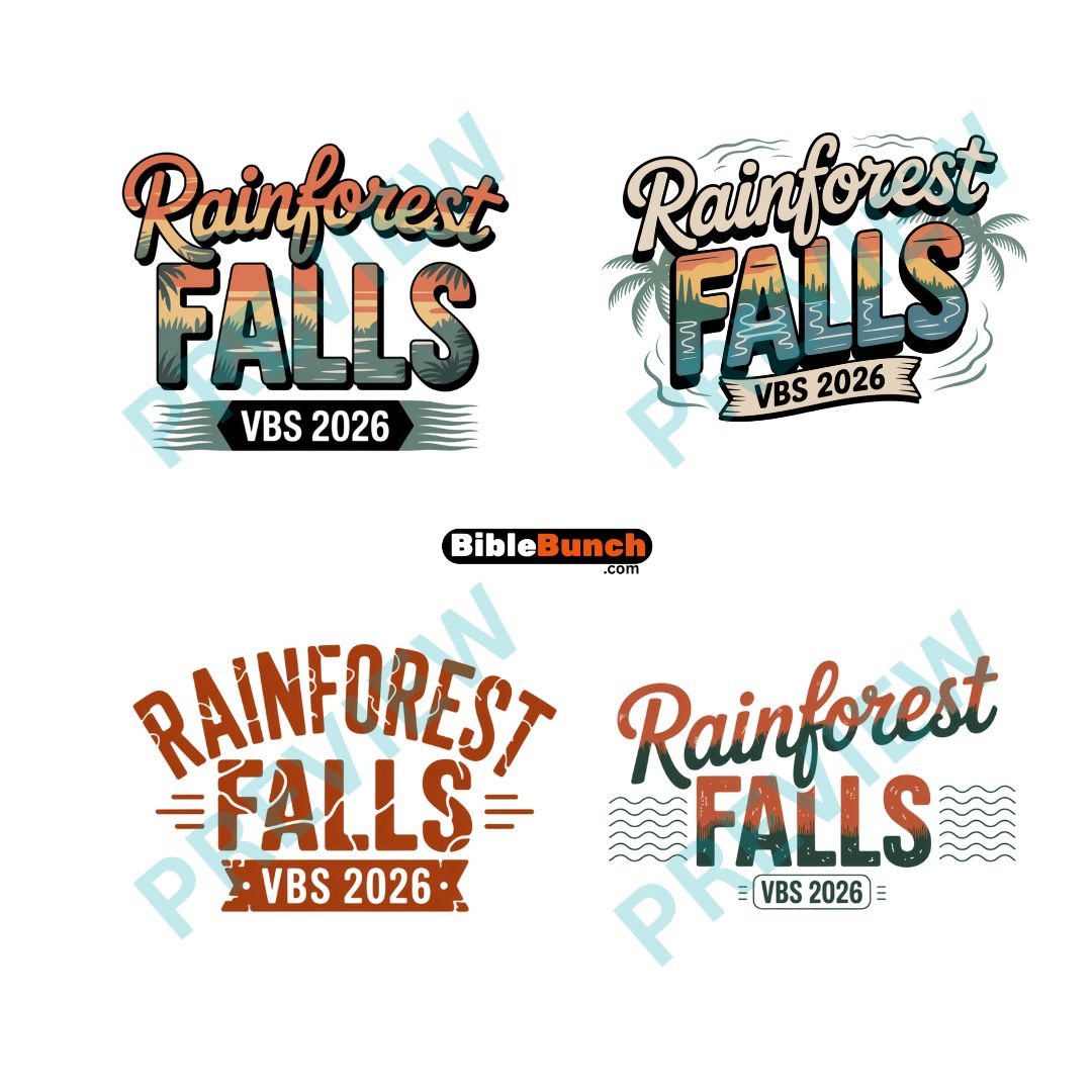 Brand your VBS in seconds. This Rainforest Falls VBS 2026 Logo Bundle includes 4 unique logo/graphic variations delivered in PNG + JPG formats—ideal for churches, kids ministry teams, and worship/media leaders who need clean, ready-to-use visuals for promotion and print.
