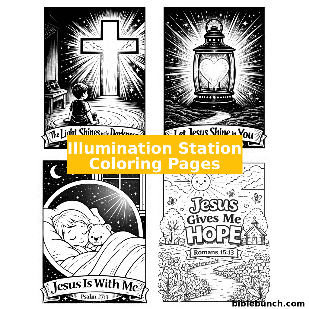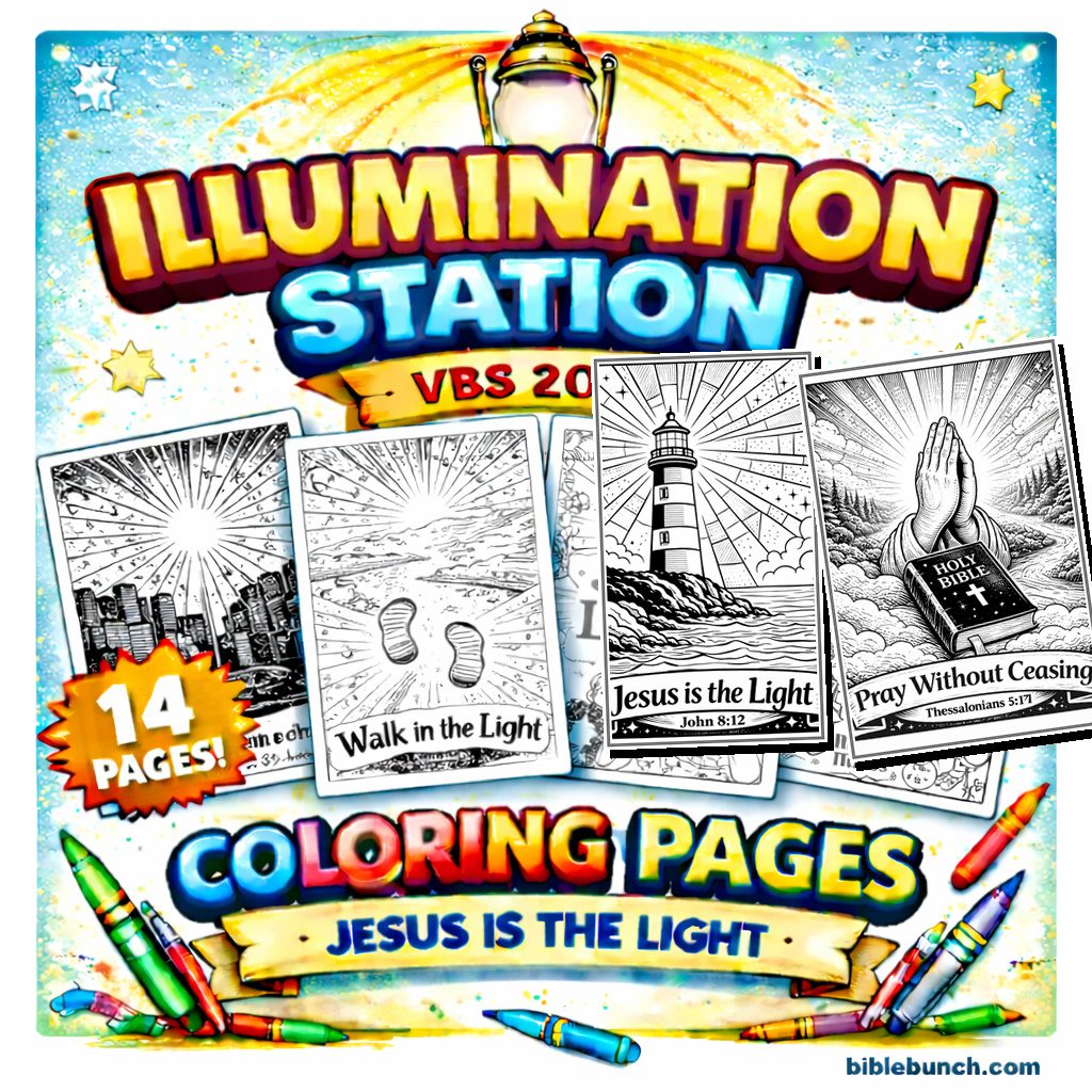 A 14-page printable coloring pack made to pair with Lifeway VBS 2026: Illumination Station. Bold, kid-friendly designs with Scripture references—perfect for VBS rotations, kids church, Sunday school, or take-home packs. Instant PDF download.