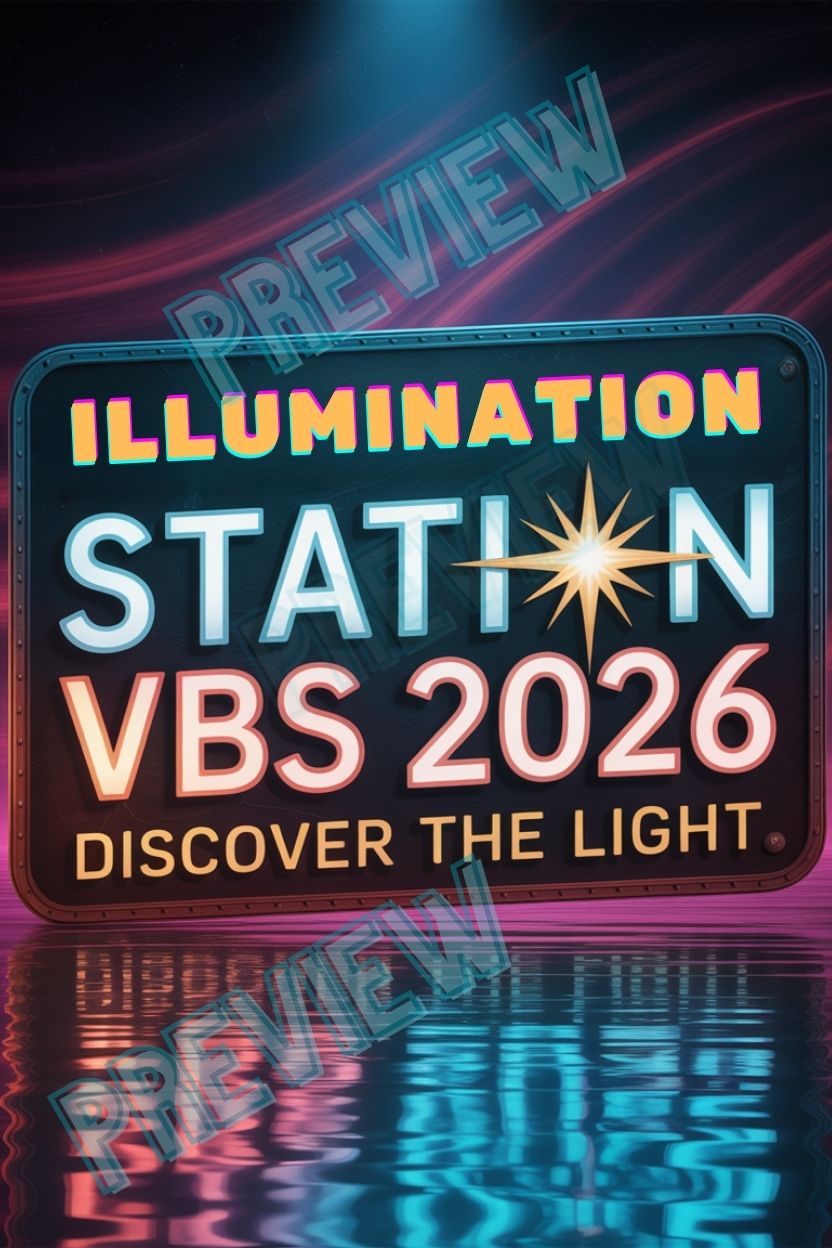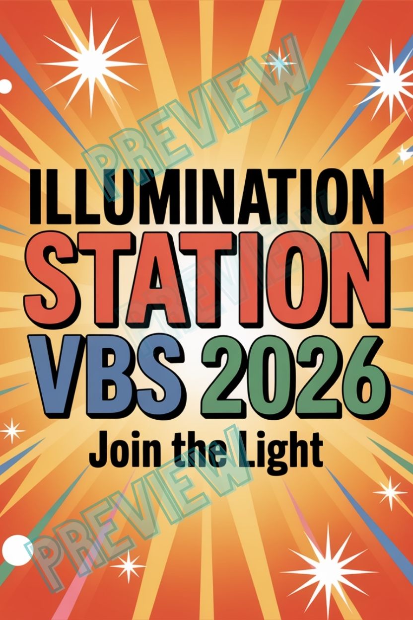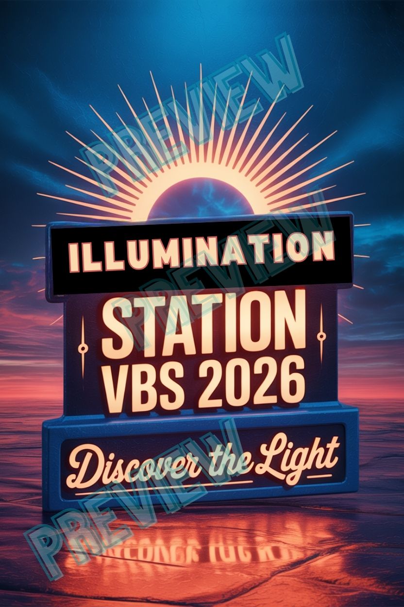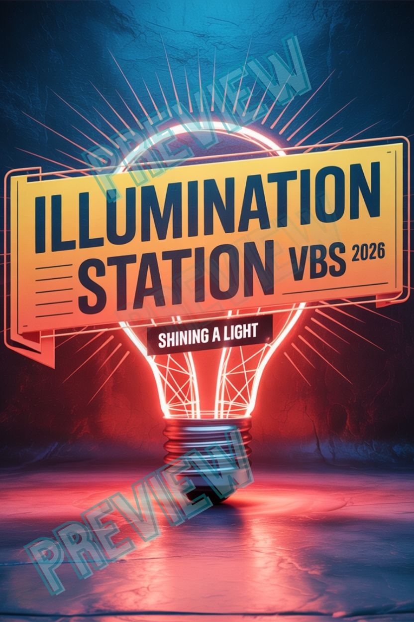 Bold, eye-catching Illumination Station VBS 2026 posters designed to instantly set the tone for your VBS theme. Perfect for lobbies, stages, screens, social media, and volunteer promos.