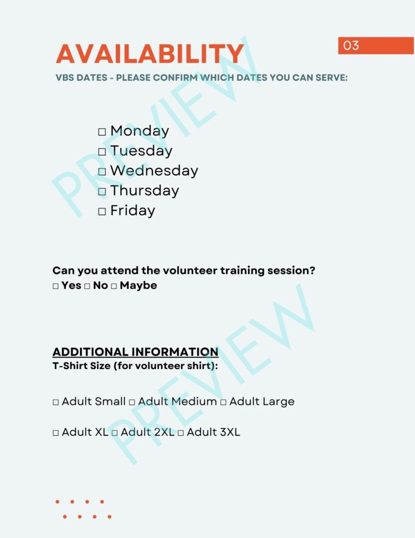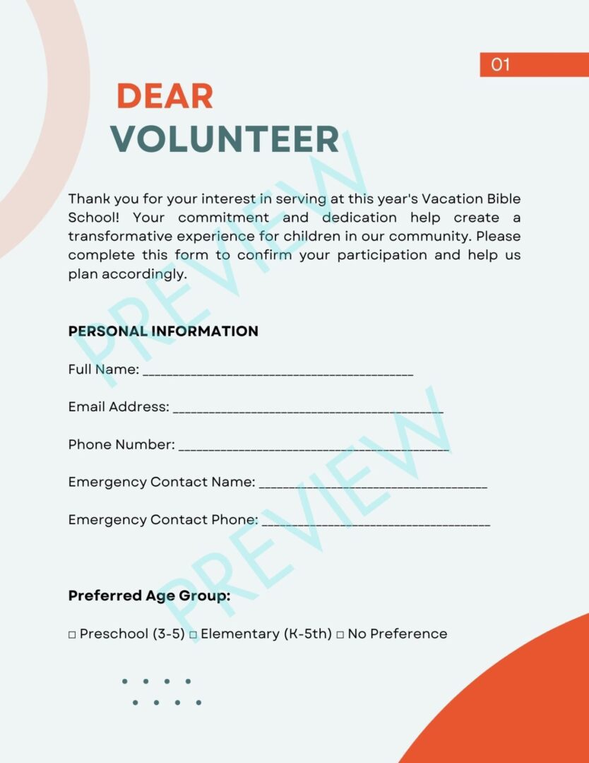 Simplify your VBS planning with this ready-to-use, printable Volunteer Form!