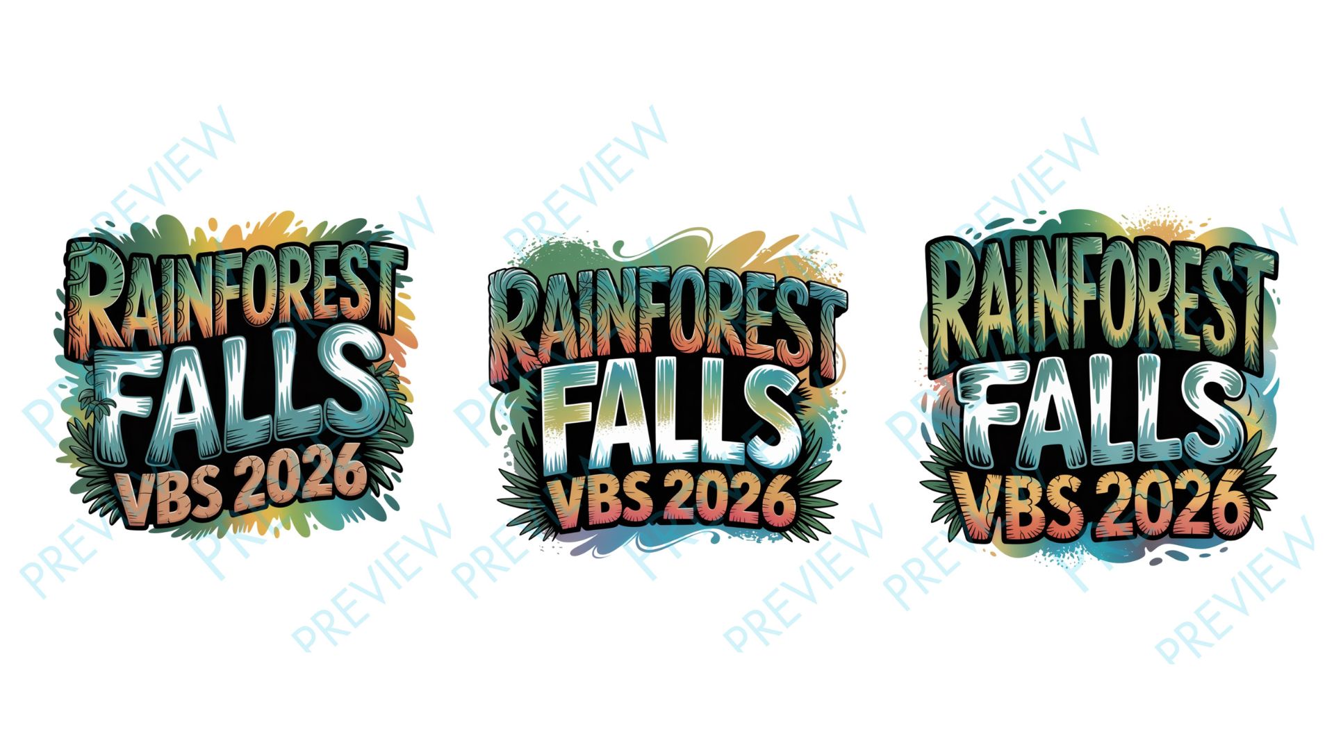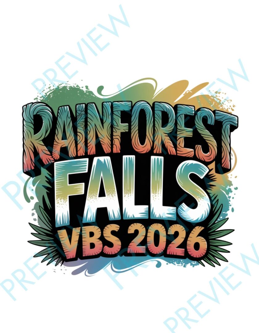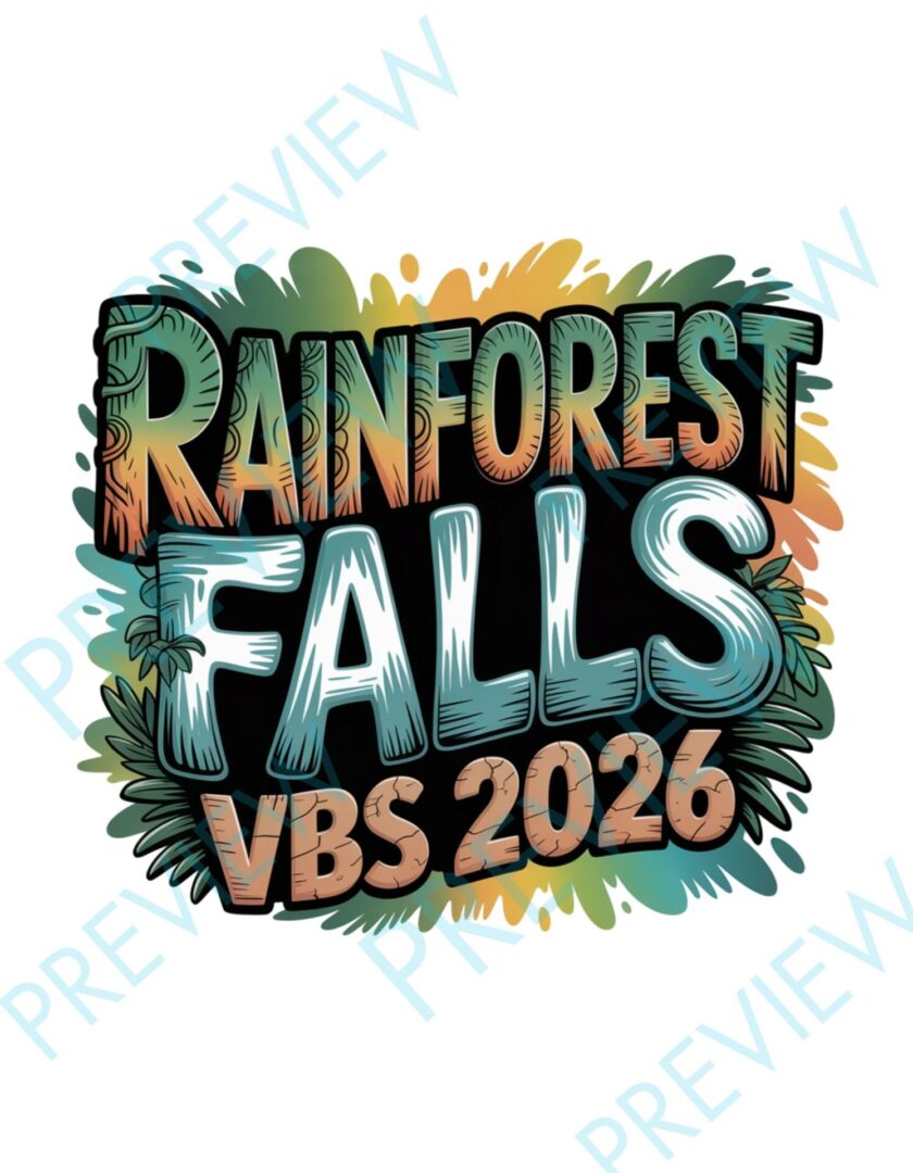 Bring your Vacation Bible School to life with the vibrant Rainforest Falls VBS 2026 logo! Perfect for t-shirts, posters, banners, and more.